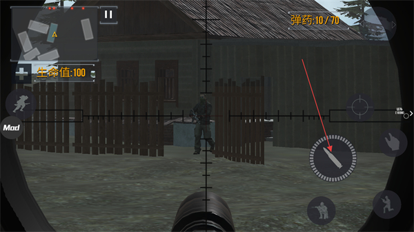 4、看見敵人時,按住箭頭所指的按鍵射擊敵人,即可完成任務。