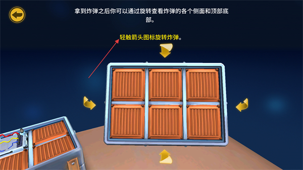 3、拿到炸彈后,輕觸箭頭圖標轉動炸彈,查看其各個側面與底部的細節內容。