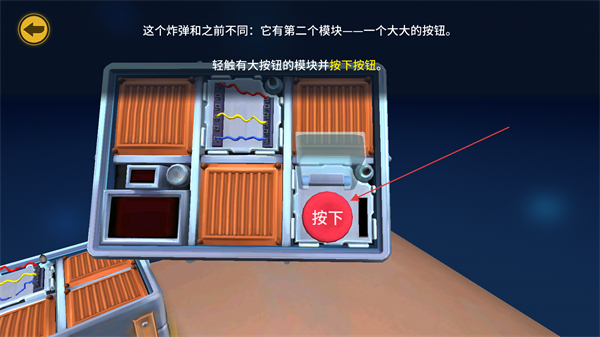 4、找到帶有大按鈕的模塊,輕點該模塊并按下【按下】按鈕,完成這一模塊的操作。