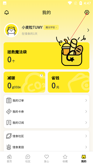 2、在“我的”頁面,點擊右上角的齒輪圖標,進入設置頁面。