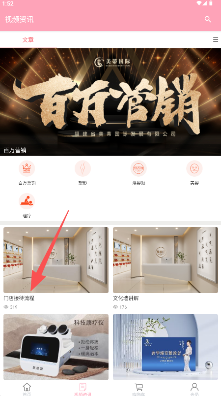 2、在視頻列表中,可選擇目標視頻(如“門店接待流程”)的封面進入詳情頁。