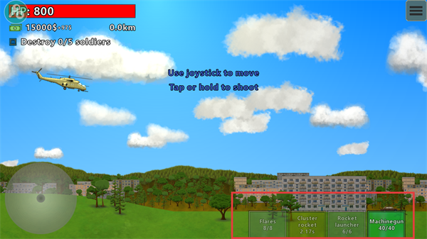 3、戰(zhàn)斗中用操縱桿移動,點擊或長按觸發(fā)射擊,完成任務(wù)。