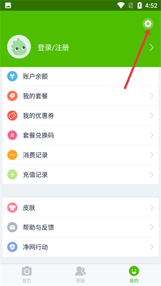 2、在【我的】頁(yè)面,點(diǎn)擊右上角的設(shè)置按鈕進(jìn)入設(shè)置界面,可管理提醒、緩存等應(yīng)用相關(guān)配置項(xiàng)。