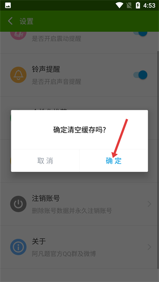 4、點(diǎn)擊【清空緩存】后彈出“確定清空緩存嗎?”的確認(rèn)框,點(diǎn)擊【確定】按鈕即可完成緩存清理。