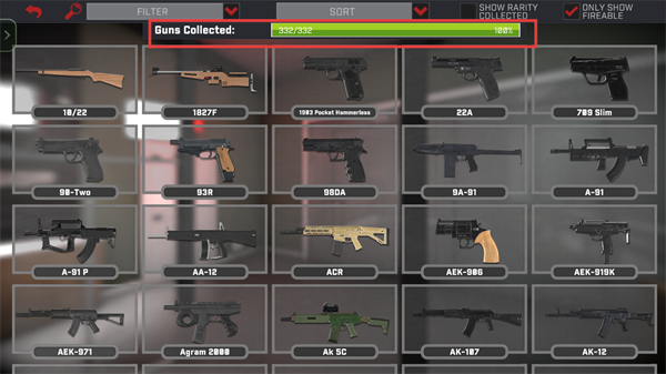 1、在槍械庫查看已收集的槍械,可篩選或排序槍械,找到目標武器進行操作。