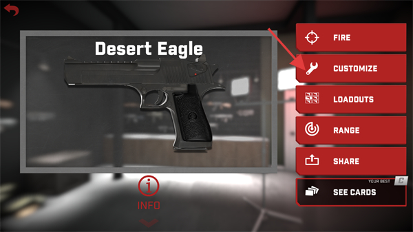 2、選中武器后,點擊右側【CUSTOMIZE】按鈕,進入自定義界面調整槍械外觀。