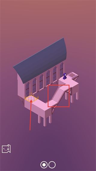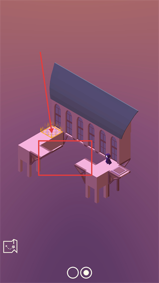 2、進入粉色建筑場景后,操控角色移動至被標注的平臺區域,即可通關。
