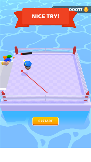 4、若關卡失敗出現【NICE-TRY!】提示時,點擊下方的【RESTART】按鈕重新開始關卡,調整策略再次挑戰。