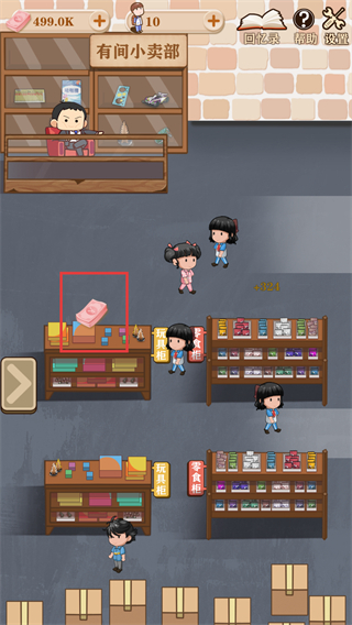 3、在小賣部主界面,點擊貨架上的商品,獲取對應的收益。