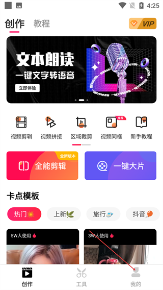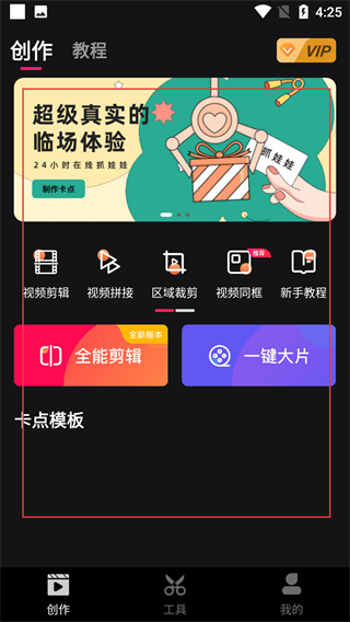 4、返回創作界面,可使用“視頻剪輯”“全能剪輯”等功能,進行視頻創作操作。