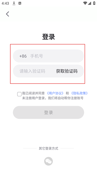 3、在登錄頁填寫手機號,點擊【獲取驗證碼】并填寫驗證碼。