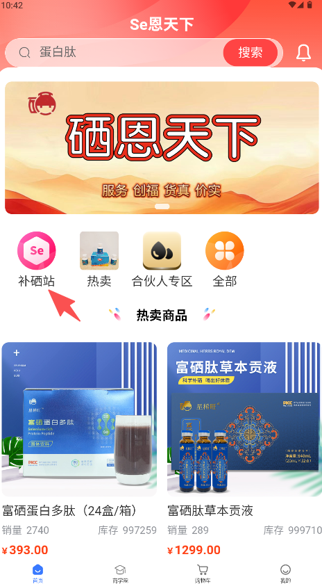1、打開軟件后,在首頁點擊“補硒站”入口。