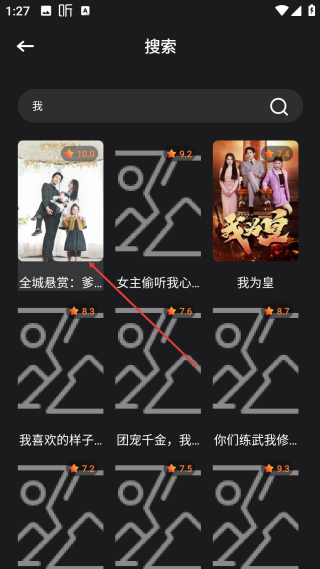 3、在搜索結(jié)果頁,選中【目標(biāo)影視內(nèi)容】,進入該影視的詳情查看頁面。