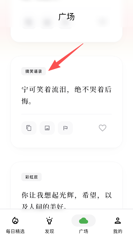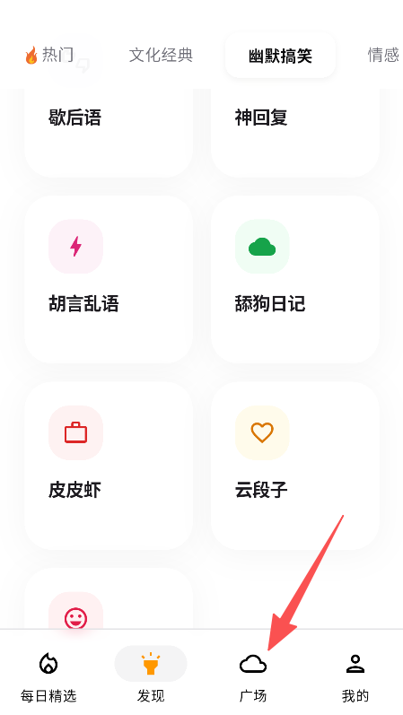 2、點(diǎn)擊廣場(chǎng)進(jìn)入對(duì)應(yīng)頁(yè)面,查看搞笑語(yǔ)錄等語(yǔ)句內(nèi)容。