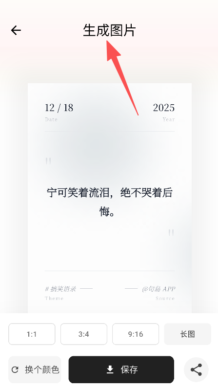 3、支持將語(yǔ)句生成圖片,可選擇圖片比例、更換顏色,還能完成保存及分享相關(guān)操作。