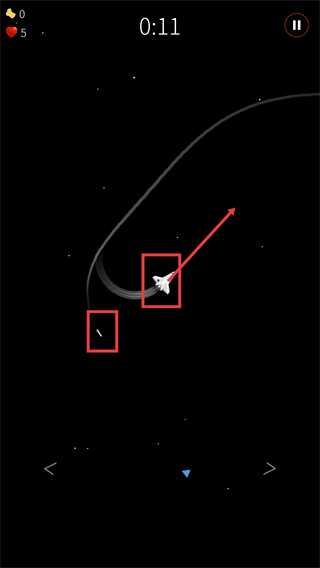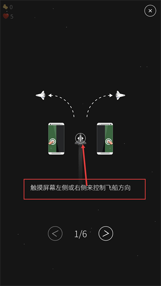 2、游戲操作方式為觸摸屏幕左側(cè)或右側(cè)來(lái)控制飛船方向,需通過(guò)該操作調(diào)整飛船軌跡,完成關(guān)卡要求。