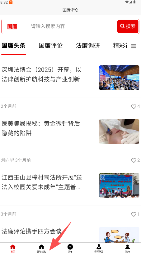1、廉政機構瀏覽與查詢功能,支持按地域或類型篩選查找相關機構,查看其基本介紹與動態新聞。