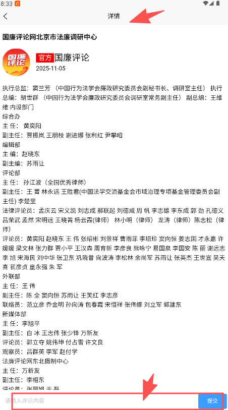 3、進入機構詳情頁面在底部輸入評論內容并點擊“提交”。