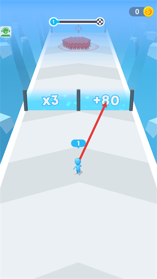 2、角色顯示數字【1】時,優先選擇【+80】區域提升數值,再靠近【x3】區域,快速擴大角色規模以應對后續挑戰。