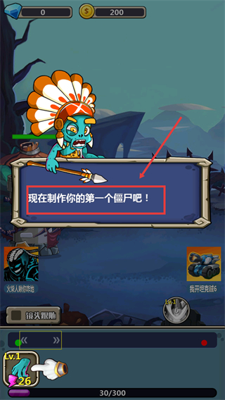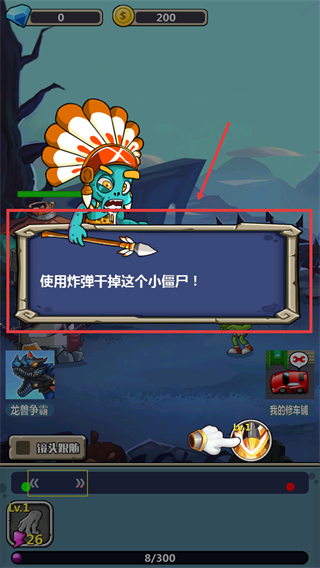 1、根據提示使用炸彈攻擊特定小僵尸,完成初期戰斗目標,快速熟悉基礎操作流程。