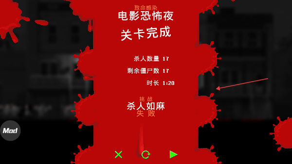 4、查看【殺人數量】-【剩余僵尸數】-【時長】的關卡結果,根據成敗選擇重新嘗試或繼續推進。