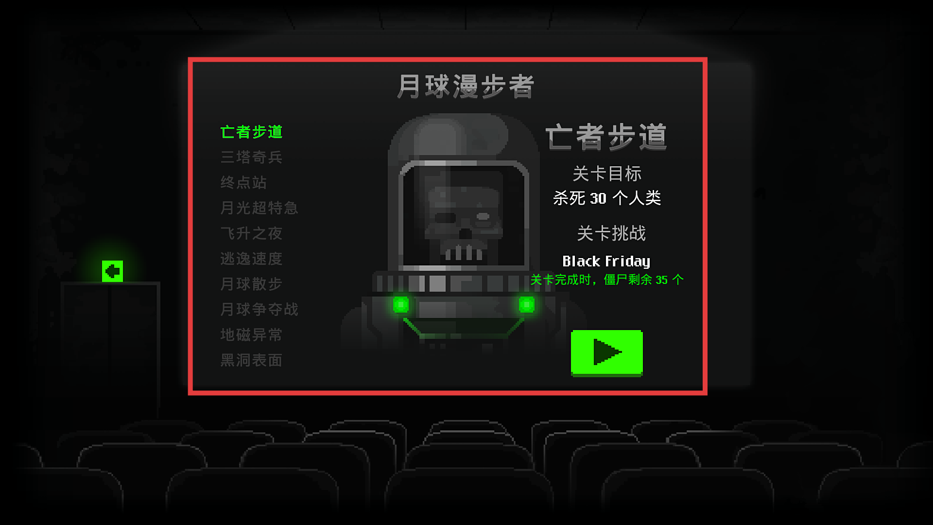 2、在關(guān)卡選擇界面,選【亡者步道】關(guān)卡,了解目標殺【30】人類及挑戰(zhàn)【BlackFriday】。