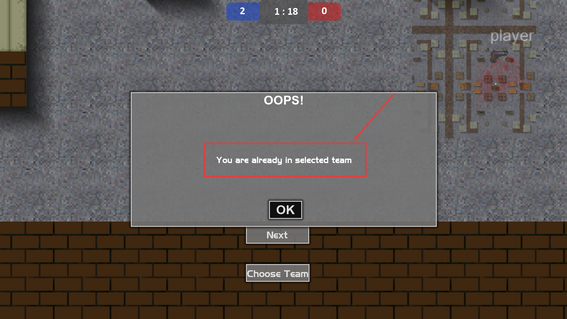 1、遇到【Oops】提示【Youarealreadyinselectedteam】時,點擊下方【OK】按鈕即可繼續游戲流程無需重復選隊。