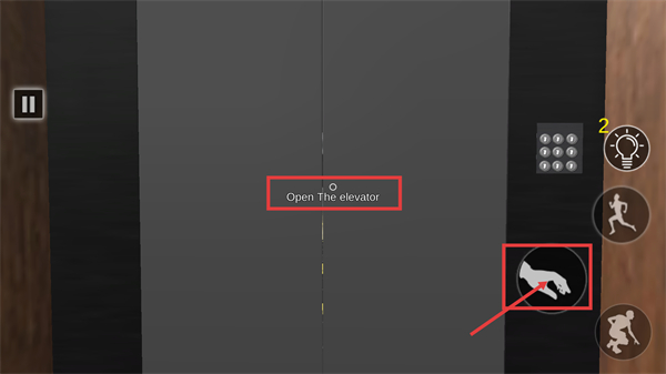 2、遇到電梯門時,點擊界面的手形按鈕,執行【Open-The-elevator】操作,打開電梯門推進流程。