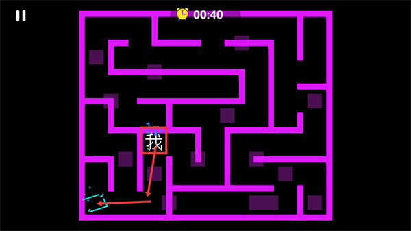 3、在迷宮中操控【我】標識的角色移動時,需觀察路徑走向,優先選擇開闊通道推進,縮短到達終點的時間。