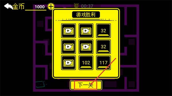 4、關卡勝利后,可獲得對應獎勵,點擊【下一關】進入新的迷宮挑戰,也可觀看視頻獲取額外獎勵。