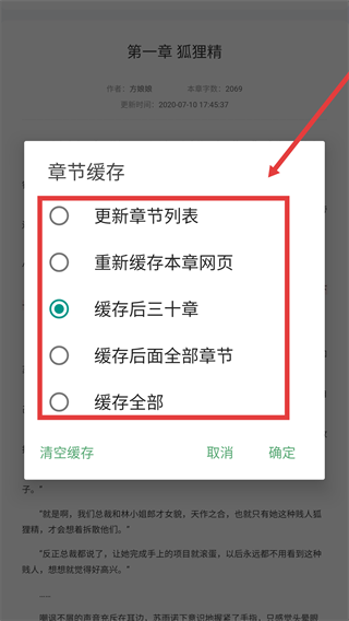 3、在章節緩存菜單中,選擇所需的緩存選項。