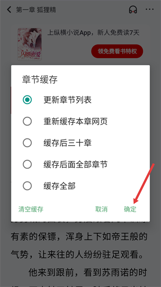 4、選擇對應緩存選項后,點擊“確定”按鈕,完成目標章節的下載緩存操作。