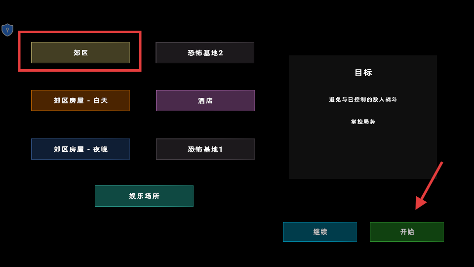 2、選【郊區】任務,明確“避免與已控制敵人戰斗”等目標,點擊【開始】進入場景。