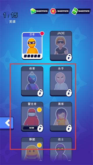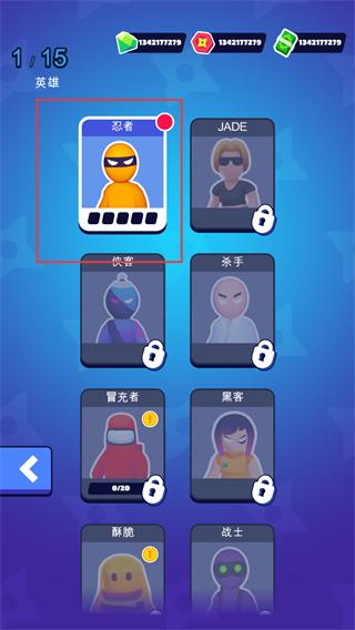 2、在英雄界面選擇已解鎖的【忍者】角色,該角色可用于關卡中的潛行與戰斗。