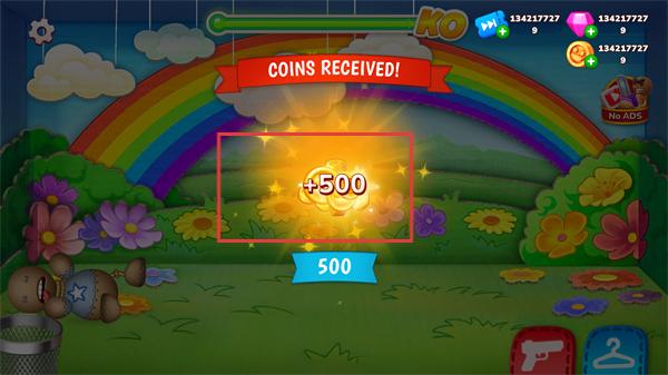 2、領取獎勵后觸發【COINS-RECEIVED!】提示,獲得【+500】金幣,積累游戲資源。