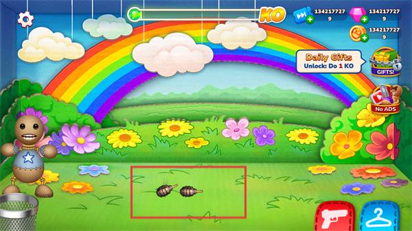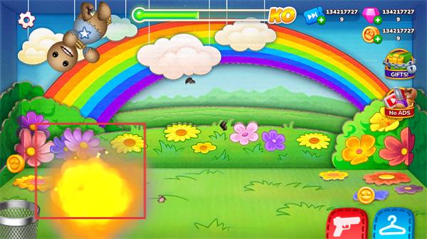 4、使用拾取的道具攻擊木偶人,觸發特效傷害,持續消耗其上方【綠色-血量條】。