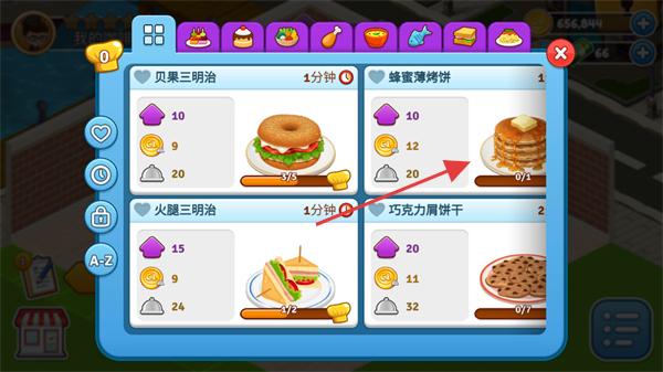 3、在菜品界面選擇【蜂蜜薄烤餅】,該菜品消耗【10-紫幣】【12-金幣】,制作時長為1分鐘。